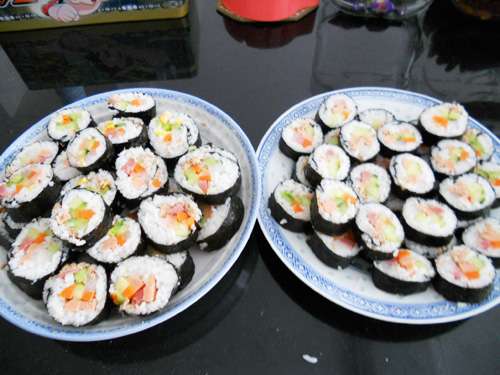 過程中,最重要有2點,一個是米飯要煮好,糖醋味要拌好加點芝麻油很不錯;另一個就是卷的手法拿捏,不好說,就是要多練習吧。實在搞不定找個大廚的視頻看看就知道了。。